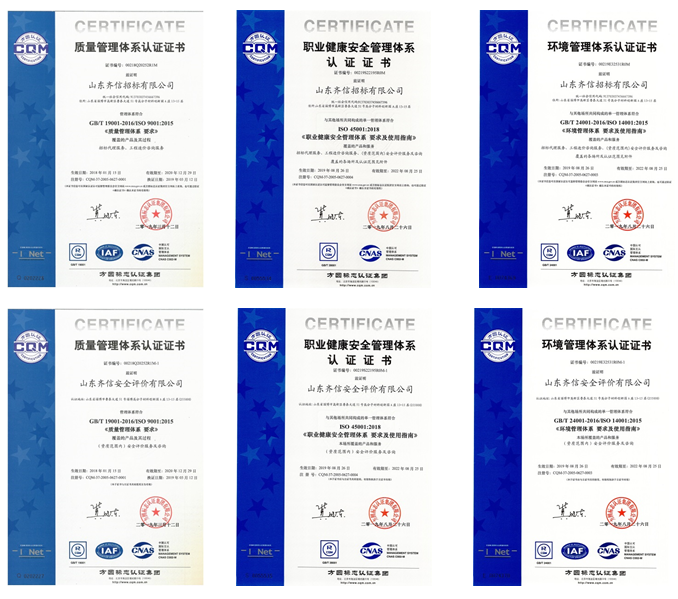 2019年8月,伴隨著公司“質(zhì)量月”活動,在公司領(lǐng)導(dǎo)的大力支持以及各部門的積極配合下,公司在原有的質(zhì)量體系基礎(chǔ)上,又新增申請了環(huán)境管理體系和職業(yè)健康安全管理體系認(rèn)證,并順利通過此次認(rèn)證,目前山東齊信招標(biāo)有限公司及山東齊信安全評價有限公司均已具備ISO三大體系認(rèn)證證書。