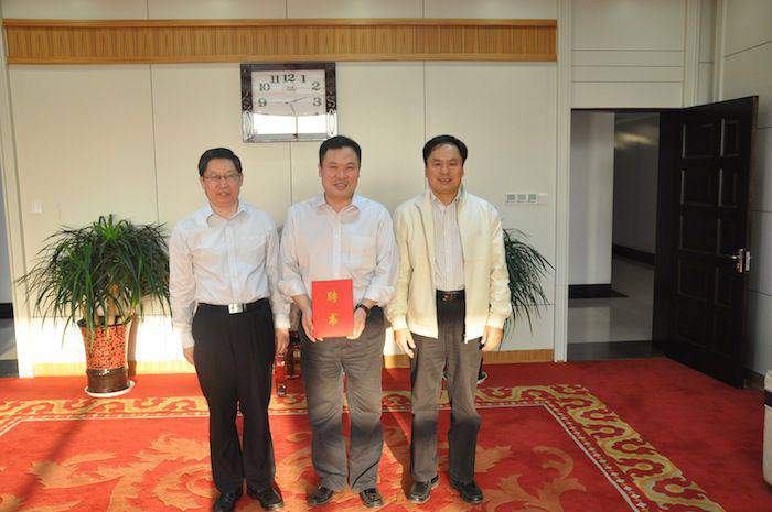 九月二十三日,我公司董事長郭培勛先生(中)受聘山東輕工業(yè)學院教授聘書頒發(fā)儀式在學院會議廳舉行,山東輕工業(yè)學院校長陳嘉川(左)親自為郭培勛先生頒發(fā)聘書,院黨委書記徐同文(右)出席了聘書頒發(fā)儀式。