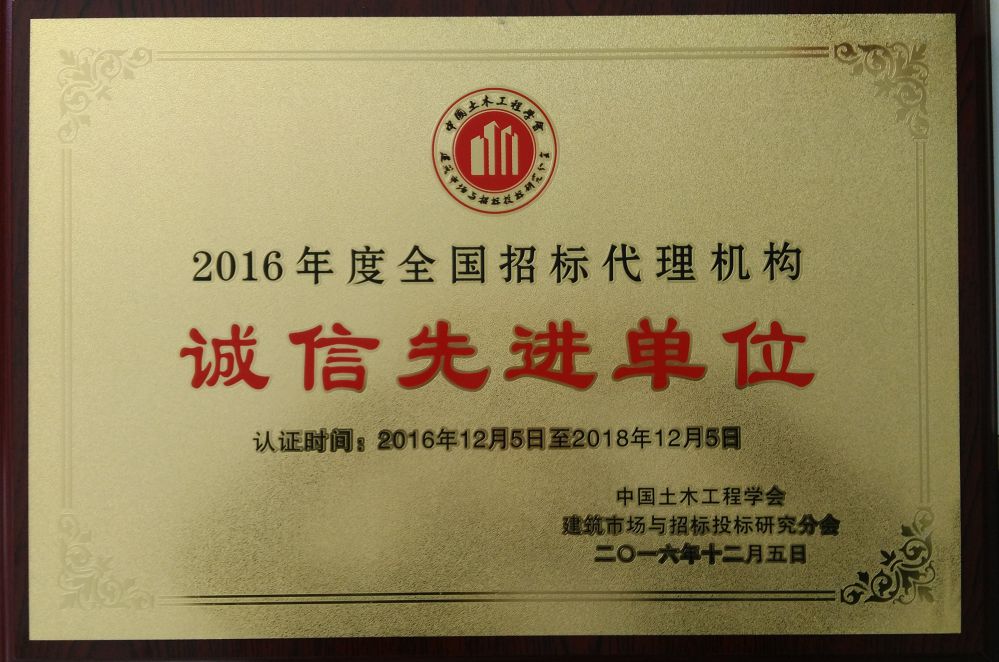 中國土木工程學會建筑市場與招投標研究分會在全國行業范圍內開展了“2015-2016年度全國建設工程招標代理機構誠信先進單位”評選表彰活動。經各省、自治區、直轄市相關部門組織初審,嚴格把關,評選推薦并報中國土木工程學會建筑市場與招標投標研究分會全國建設工程招標代理機構專家咨詢委員會評審,最終評選出全國“誠信先進單位”,山東齊信招標有限公司獲得了本次“誠信先進單位”的榮譽稱號。
