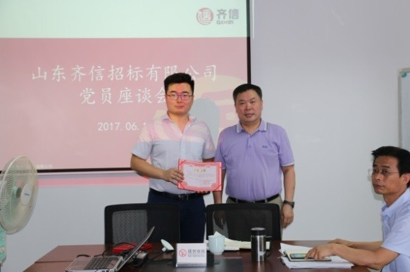 6月16日,山東齊信招標有限公司舉行“兩學一做”黨員座談會暨“時代先鋒”黨員頒獎會,會議傳達了高新區(qū)企業(yè)黨辦關于“兩學一做”常態(tài)化、制度化會議精神,并組織學習習近平總書記重要指示精神、中央和省市委座談會精神。中共山東齊信招標有限公司支部委員會全體黨員參加了會議。