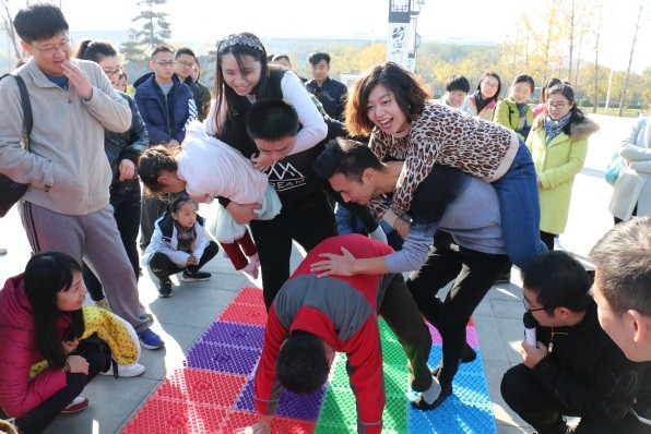 這些項(xiàng)目既考驗(yàn)團(tuán)隊(duì)合作、執(zhí)行力,又體現(xiàn)相互信任、又挑戰(zhàn)個人潛能……四個隊(duì)你追我趕,難分上下,每名隊(duì)員積極參與,大家團(tuán)結(jié)一心,群策群力。每完成一個項(xiàng)目,裁判都會對獲勝者頒發(fā)獎品。