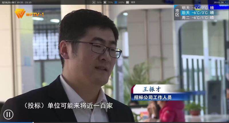 本期節目的主題為“建設活力城市,激發發展活力”,濰坊政府招標事業部王振才作為濰坊市招標代理機構的代表接受了記者的采訪。王振才表示:以前線下報名時投標單位可能來近百家,報名單位要排很長時間等候。現在相關手續均可以通過線上操作,給代理機構及投標人節省很多人力及相關費用支出。